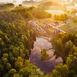 Osada Skoczkowo domki z kominkami, jacuzzi, balią i sauną nad jeziorem jest usytuowana 3 km od Edukacyjnego Park-zoo Egzotycznego Kaszuba oraz oferuje zewnętrzny basen z jacuzzi, sauną i gorącymi łaźniami publicznymi.